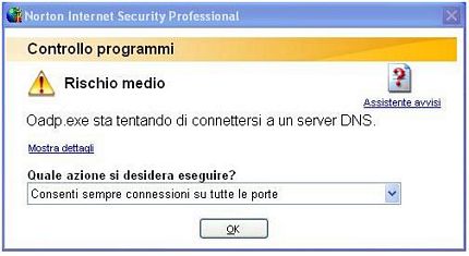 Il Norton ci avviserà anche del tentativo di connessione da parte del Sabre Printing Module, il programma che gestisce le stampanti